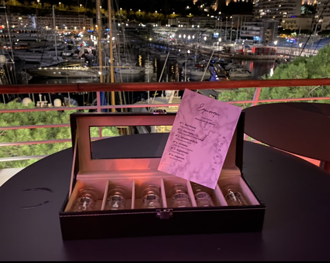 L’arte del mixology è ad un livello superiore grazie alla realizzazione di un bouquet di profumi realizzati appositamente. Sul banco è presente un cofanetto con dentro 6 profumi che il cliente potrà provare su bastoncini di carta come in una vera profumeria: dai profumi mediterranei dei fiori di arancio a quelli fruttati di ribes e pompelmo. Una volta scelto il profumo preferito, il cliente potrà gustare il cocktail caratterizzato da quei profumi unici.